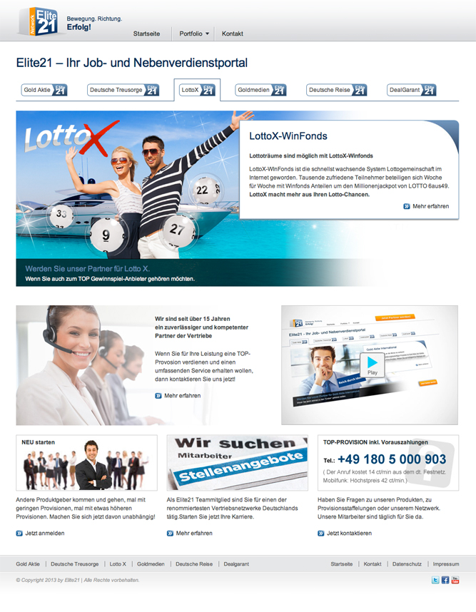 Die Welt von Elite21 bringt frischen Wind in die Vertriebsbranche. Elite21 beliefert seine Kunden mit innovativen Produkten. Als Produktgeber für die Call Center Branche kann Elite21 auf 15 Jahre Erfahrung zurückblicken. Als neues Geschäftsfeld hat sich Elite21 erfolgreich die Internetbranche erschlossen.